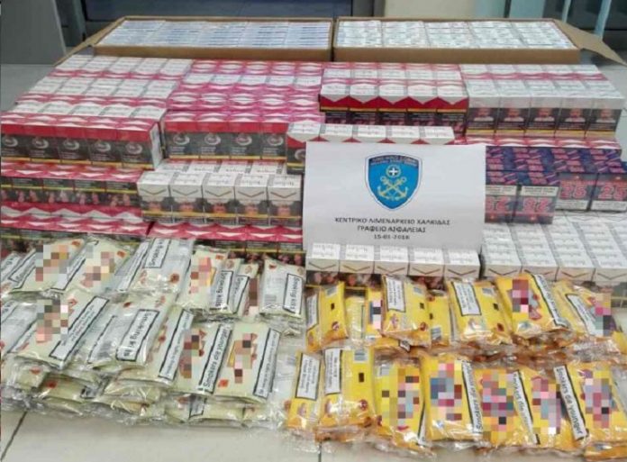 Συγκεκριμένα, κατόπιν αξιοποίησης πληροφοριών, εντοπίστηκαν σε ΙΧΕ όχημα που οδηγούσε ο 33χρονος, στην περιοχή “ΠΛΑΚΑ” πλησίον γέφυρας Χαλκίδας, χίλια πεντακόσια (1.500) πακέτα των είκοσι (20) τσιγάρων έκαστο διαφόρων επωνυμιών και εβδομήντα πέντε (75) πακέτα καπνού των πενήντα γραμμαρίων (50gr), τα οποία δεν έφεραν την ένσημη ταινία ειδικού φόρου κατανάλωσης.