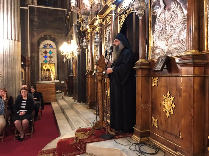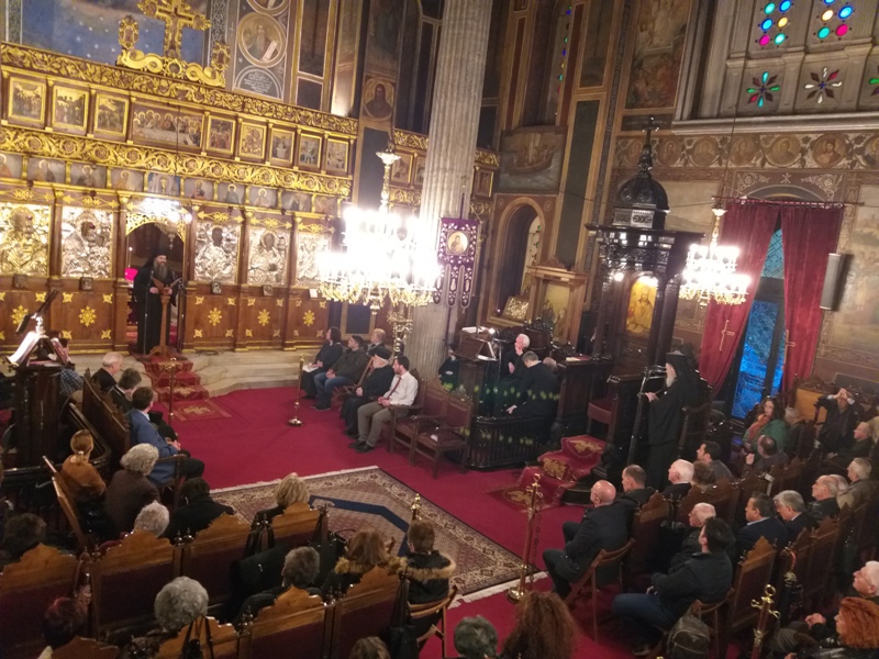 Το απόγευμα της Κυριακής 14 Απριλιου 2019, στον Ενοριακό Ι. Ναό Αγίου Νικολάου Χαλκίδος έλαβε χώρα η ακολουθία του έκτου, και τελευταίου για την φετινή Μεγάλη Τεσσαρακοστή, Κατανυκτικού Εσπερινού, κατά την διάρκεια του οποίου χοροστάτησε ο Σεβασμιώτατος Μητροπολίτης Χαλκίδος κ. Χρυσόστομος, ο οποίος παρουσίασε, καλωσόρισε και ευχαρίστησε τον αποψινό ομιλητή, Πανοσιολογιώτατο Αρχιμανδρίτη π. Σιλουανό Πεπονάκη, Καθηγούμενο της Ιεράς Μονής Αγ. Γεωργίου Μαυροματίου Θηβών, ο οποίος, ανέπτυξε την σημασία της μετάνοιας, ως βιαίας πνοής στην καρδιά του ανθρώπου και την πραγμάτωση του παραδείσου δι’ αυτής.