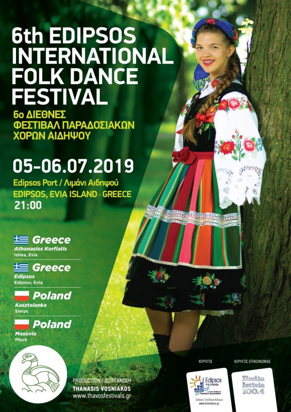 Το ‘‘6ο Διεθνές Φεστιβάλ Παραδοσιακών Χορών Αιδηψού” θα πραγματοποιηθεί στα Λουτρά Αιδηψού, στη Βόρεια Εύβοια, το 2ήμερο Παρασκευή 5 & Σάββατο 6 Ιουλίου 2019