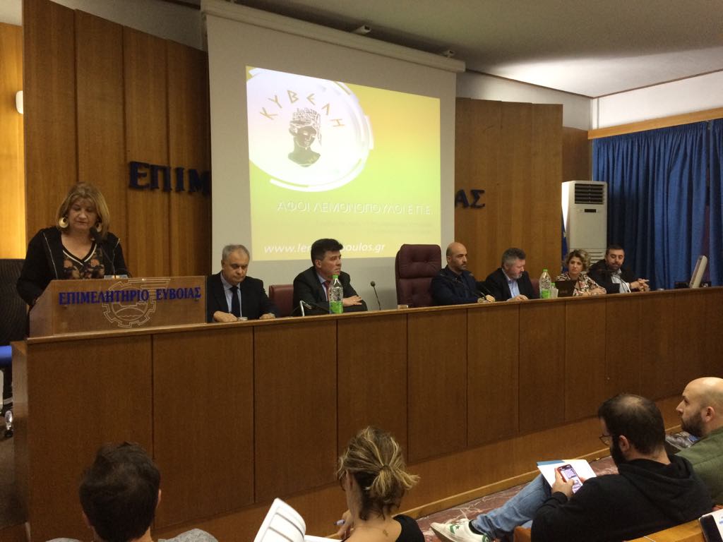 Η Πρόεδρος του Επιμελητηρίου Εύβοιας Παρασκευή Αγιοστρατίτη, ανέφερε ότι το Επιμελητήριο παρακολουθεί ανελλιπώς τις εξελίξεις στο οικονομικό και επιχειρηματικό περιβάλλον, έχοντας ως βασική μέριμνα να δημιουργήσει εκείνες τις προϋποθέσεις που θα επιτρέψουν στους επαγγελματίες να ανταπεξέλθουν δημιουργικά και γόνιμα σε κάθε νέο οικονομικό τοπίο. Σε αυτό το πλαίσιο τέτοιου είδους πρωτοβουλίες θα έχουν συνέπεια και συνέχεια.