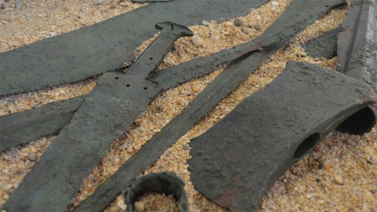 Ένα αινιγματικό σύνολο χάλκινων όπλων και επαγγελματικών εργαλείων της μυκηναϊκής εποχής, που φέρεται πως εντοπίστηκαν το καλοκαίρι του 1940 στο χωριό Ανδρονιάνοι της κεντρικής Εύβοιας και μεταφέρθηκαν στο Εθνικό Αρχαιολογικό Μουσείο, παρουσιάζει το «Αθέατο Μουσείο».