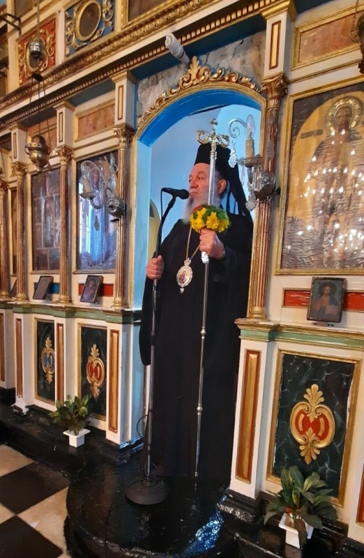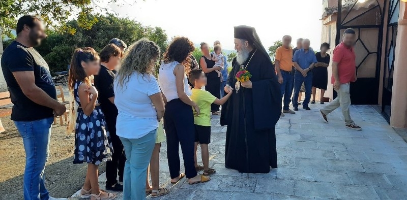 Λίγο πριν την απόλυση, ο Σεβασμιώτατος κ. Χρυσόστομος ομίλησε προς τους προσελθόντες πιστούς για την δυνητική μεταμόρφωση του ανθρώπου μέσα στην Εκκλησία, που είναι ο τόπος όπου χαρίζεται ο Χριστός στους πιστούς και μεταλαμβάνεται απ’ αυτούς. Εν συνεχεία αναφέρθηκε στο πρόσωπο της Παναγίας μας ως μεσίτριάς μας προς τον Θεό.