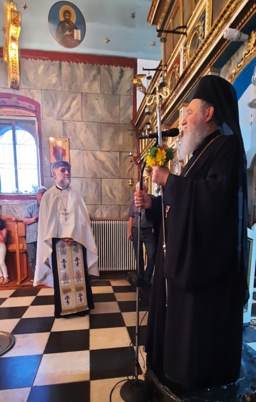 Την Τρίτη 4 Αυγούστου 2020 το απόγευμα, ο Σεβασμιώτατος Μητροπολίτης Χαλκίδος κ. Χρυσόστομος, συνοδευόμενος από τον Πρωτοσύγκελλό του Αρχιμ. Νικόδημο Ευσταθίου και τον Διακ. Νικόλαο Πριμηκύριο, επισκέφθηκε την ορεινή ενορία των Μηλεών Β.Ευβοίας,όπου χοροστάτησε στην ιερά Ακολουθία της Παρακλήσεως προς την Υπεραγία Θεοτόκο. Τον Σεβασμιότατο υποδέχθηκαν με συγκινητική θέρμη ο πολιός Εφημέριος της Ενορίας π. Ιωάννης Παπαγεωργίου και οι ευσεβείς ενορίτες.
