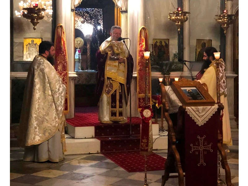 Συμπαραστάτες του Σεβασμιωτάτου στο ιερό Θυσιαστήριο ήταν οι Αρχιμ. Νεκτάριος Ευγενικός-Ιεροκήρυκας και Συμεών Ηλιοδρομίτης-Προϊστάμενος της Ενορίας, ενώ το ιερό αναλόγιο διηκόνησαν με πιστότητα στην βυζαντινή παράδοση ο κ. Κυριάκος Στάντζος-Καθηγητής της Σχολής Βυζαντινής Μουσικής της Ι. Μητροπόλεως Χαλκίδος και η θυγατέρα του Μαλαματή. Το σύνολο δε των ιερών ακολουθιών μεταδόθηκε ζωντανά από τον Ραδιοφωνικό σταθμό της Ι. Μητροπόλεως (97,7fm) και το διαδικτυακό κανάλι της Ενορίας: https://www.youtube.com/watch?v=_kyD8aZd6c0