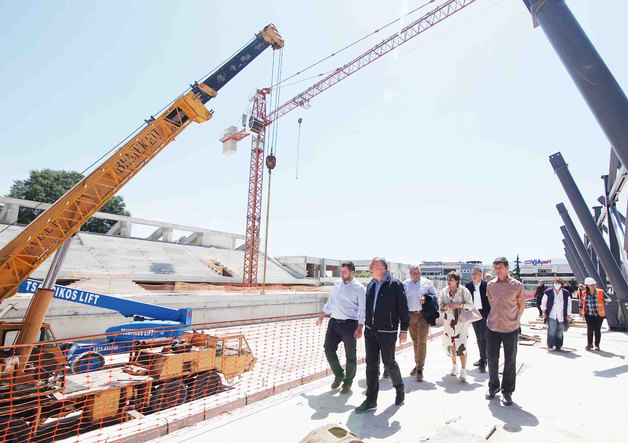 Το υπό κατασκευή κλειστό κολυμβητήριο επισκέφθηκαν σήμερα το μεσημέρι ο Δήμαρχος Λαμιέων Θύμιος Καραΐσκος και ο Περιφερειάρχης Στερεάς Φάνης Σπανός, προκείμενου να εποπτεύσουν τις εργασίες εγκατάστασης του στεγάστρου και να επιβεβαιώσουν την πορεία εξέλιξης των εργασιών.