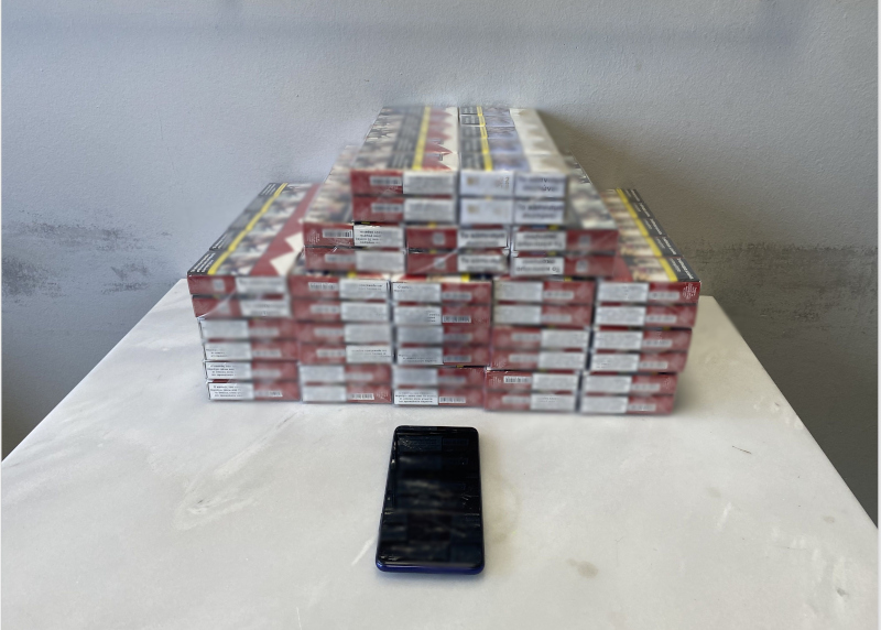 Ακολούθως συνελήφθη και κατασχέθηκαν (200) πακέτα τσιγάρων αδασμολόγητα, διαφόρων μαρκών, καθώς επίσης και ένα κινητό τηλέφωνο που βρέθηκε στην κατοχή του.