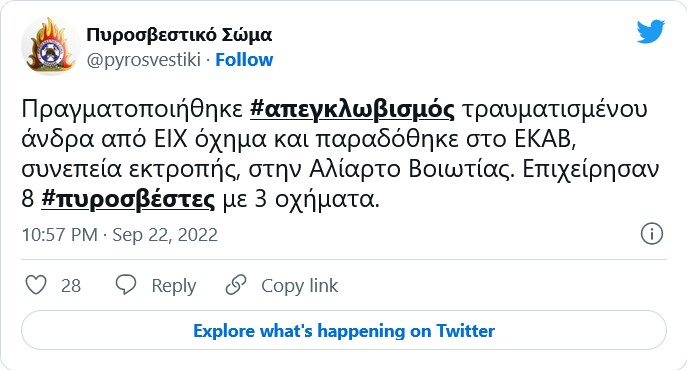 Πιο συγκεκριμένα αυτοκίνητο με κατεύθυνση προς Αλίαρτο, για άγνωστη μέχρι στιγμής αιτία, εξετράπη της πορείας του. Στο σημείο έσπευσαν 3 οχήματα και 8 πυροσβέστες, όπου απεγκλώβισαν έναν άνδρα που είχε εγκλωβιστεί στο όχημά του, ως αποτέλεσμα της εκτροπής αυτού.