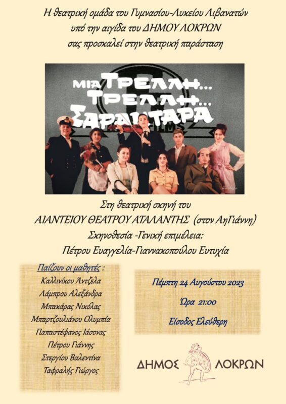 Θεατρική Παράσταση “Μια τρελή, τρελή σαραντάρα” από την θ. ομάδα Γυμνασίου- Λυκείου Λιβανατών