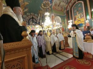Ο Σεβασμιώτατος Ποιμενάρχης μας, Μητροπολίτης Χαλκίδος κ. Χρυσόστομος, την παραμονή, χοροστάτησε κατά τον Εσπερινό, στον Ι. Ναό Παναγίας Ελεούσης Δοκού Χαλκίδος, πλαισιωθείς από τους Αρχιμ. Νικόδημο Ευσταθίου-Πρωτοσύγκελλο της Ι. Μητροπόλεως, Συμεών Ηλιοδρομίτη-Προϊστάμενο του Ι. Ν. Αγ. Παρασκευής Πολιούχου Χαλκίδος, Δαμασκηνό Παπακωνσταντίνου-Εφημέριο του Ι. Ν. Ευβοέων Αγίων Χαλκίδος, Ευγένιο Τσάλλα-Εφημέριο του Ι. Ν. Αγ. Αποστόλων Ν. Αρτάκης, τους Πρωτοπρεσβ. Κωνσταντίνο Λοβέρδο-Εφημέριο της Ενορίας Οσίου Ιωάννου Ρώσσου Βασιλικού, Γεώργιο Μωραϊτη-Προϊστάμενο της Ενορίας Δοκού, τον Οικον. Χρήστο Γεωργαρά-Εφημέριο του Ι. Ν. Αγ. Αποστόλων Πέτρου και Παύλου Χαλκίδος, τους Πρεσβ. Ευάγγελο Πράγια-Εφημέριο της Ενορίας Κοιμ. Θεοτόκου Δοκού, Πέτρο Βλάχο-Εφημέριο του Ι. Ν. Αγ. Τρύφωνος Ν. Λαμψάκου, τους Διακ. Σταύρο Καλαφάτη και Χρήστο Ραμαντανάκη.