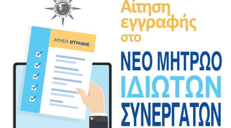 Η ΕΛΣΤΑΤ καλεί τους ενδιαφερόμενους να υποβάλουν ηλεκτρονική αίτηση για την ένταξή τους: α) στo Μητρώο Ιδιωτών Συνεργατών (ΙΣ) για την περίοδο έως και Απρίλιο 2024, β) στο υπο-Μητρώο Ιδιωτών Συνεργατών (ΙΣ) της Έρευνας Διάρθρωσης Γεωργικών και Κτηνοτροφικών Εκμεταλλεύσεων 2023, για την περίοδο Δεκεμβρίου 2023-Φεβρουαρίου 2024