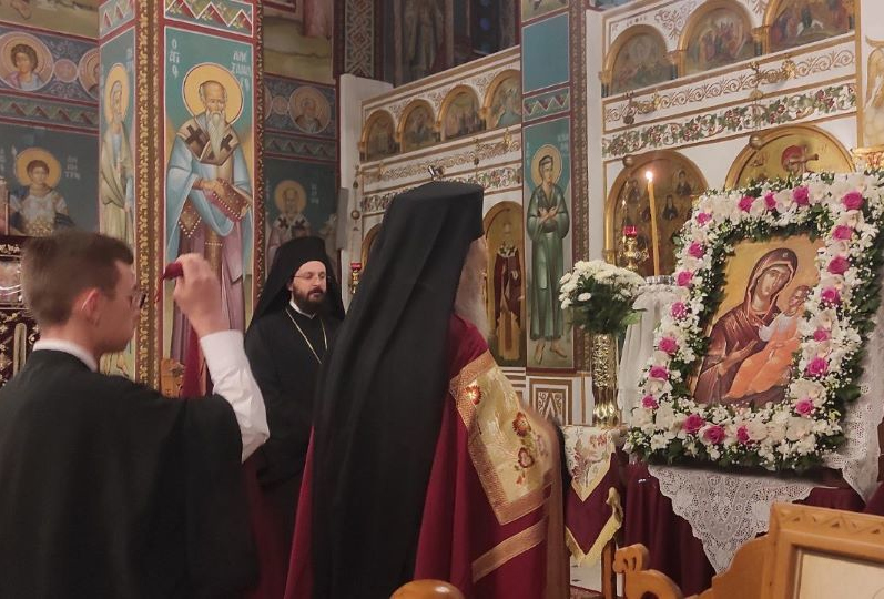 Κατά την ι. ακολουθία, τον Σεβασμιώτατο πλαισίωσαν οι αρχιμ. Νεκτάριος Ευγενικός-ιεροκήρυκας, Δαμασκηνός Παπακωνσταντίνου-εφημέριος της Ενορίας και ο αρχιδιάκ. Σταύρος Καλαφάτης.