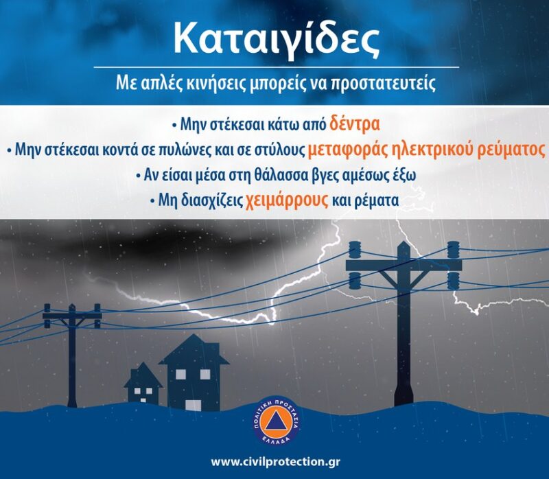Για καλύτερη ενημέρωση σχετικά με την προστασία από τους κεραυνούς, οι πολίτες μπορούν να επισκεφθούν το site της Πολιτικής Προστασίας. https://civilprotection.gov.gr/