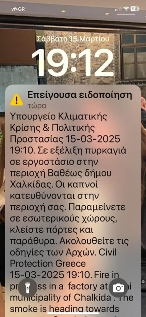Να σημειωθεί ότι εστάλει μήνυμα από το 112 προς τους κατοίκους της περιοχής για προστασία εξαιτίας των χημικών ουσιών που εκλύονται από την πυρκαγιά.