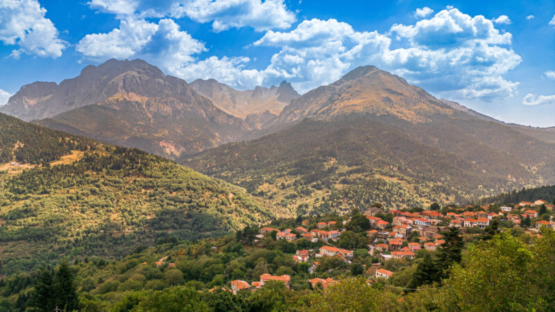 Η πλατεία του χωριού, σε αντίθεση με τις περισσότερες, βρίσκεται στην άκρη του. Εκεί, όταν ο καιρός το επιτρέπει, θα βρείτε τους ντόπιους να συζητούν και να μοιράζονται ιστορίες για τον τόπο τους. Από αυτούς θα μάθετε για τον πέτρινο ναό του Αγίου Γεωργίου, χτισμένο γύρω στα μέσα του 19ου αιώνα, με το καλαίσθητο ρολόι του, που σύμφωνα με την παράδοση προήλθε από τη Γαλλία. Στο παλιό Δημοτικό Σχολείο στεγάζεται το Λαογραφικό Μουσείο του χωριού, όπου εκτίθενται αντικείμενα της καθημερινής ζωής και τεκμήρια από το παρελθόν. Αν θελήσετε να το επισκεφθείτε, ζητήστε από τους κατοίκους να σας καθοδηγήσουν προς τον πρόεδρο, που θα σας το ανοίξει με χαρά. Από την πλατεία, αν κινηθείτε προς το εσωτερικό του χωριού, θα συναντήσετε τις πηγές του Κροκυλείου με τους νερόμυλους: πέντε πέτρινες βρύσες με ασταμάτητη ροή κρυστάλλινου νερού και τρεις παλιούς νερόμυλους που θυμίζουν άλλες εποχές.