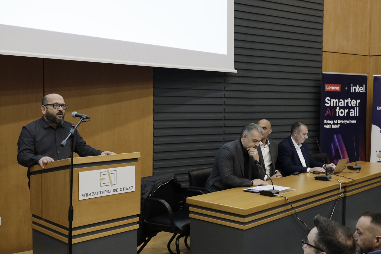 Οι εισηγητές, κ. Γεράσιμος Κοτσώνης, Sales Manager της Lenovo, και κ. Θάνος Κακαρούντας, Καθηγητής και Πρόεδρος του Τμήματος Πληροφορικής με Εφαρμογές στη Βιοϊατρική του Πανεπιστημίου Θεσσαλίας, ανέλυσαν από την πλευρά τους τον ρόλο και τις προοπτικές της Τεχνητής Νοημοσύνης τόσο στον επιχειρηματικό όσο και στον ακαδημαϊκό τομέα.