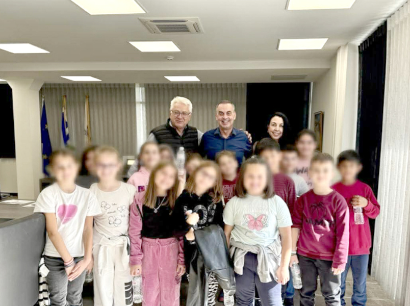 Κατά τη διάρκεια της συνάντησης, ο Δήμαρχος καλωσόρισε θερμά τα παιδιά και τους εκπαιδευτικούς που τα συνόδευαν τον Διευθυντή του Σχολείου κ. Χρήστο Δημητρίου και την κα. Εύη Δαδιώτη.