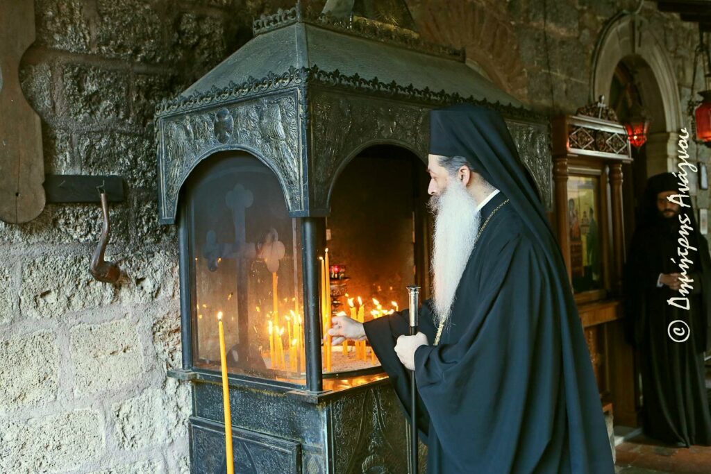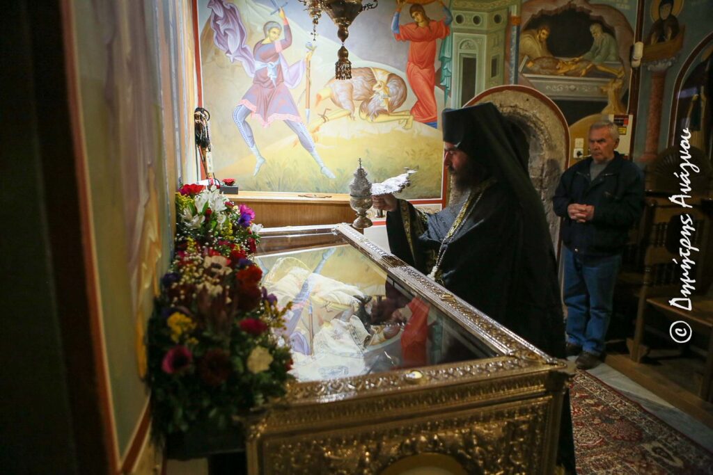 Ακολούθως ο Σεβασμιώτατος τέλεσε και Αρχιερατικό Ιερό Μνημόσυνο υπέρ αναπαύσεως του μακαριστού Ιατροδικαστή Πάνου Γιαμαρέλου, ο οποίος μέσα από την μακροσκοπική εξέταση του Ιερού Σκηνώματος, ομολόγησε την ζωντανή και θαυματουργική παρουσία του Οσίου.