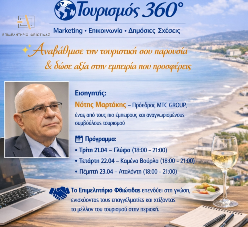 «Τουρισμός 360° – Marketing, Επικοινωνία & Δημόσιες Σχέσεις: Αναβάθμισε την τουριστική σου παρουσία – Δώσε αξία στην εμπειρία που προσφέρεις»